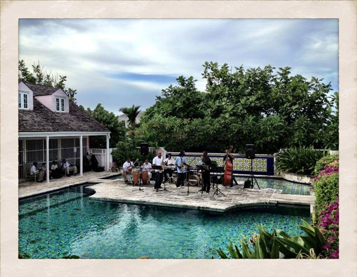 The band stretched across the stage, stretched across the pool!